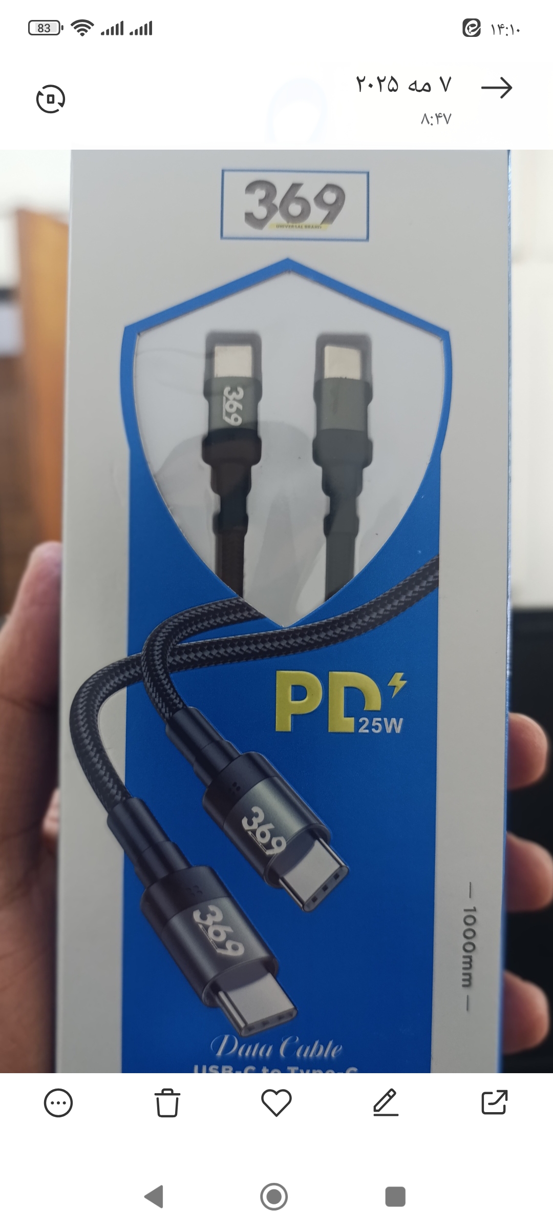 کابل دو سر سی ،فست شارژ،برند369 مدل سی6۲۸۰٬۰۰۰ تومان