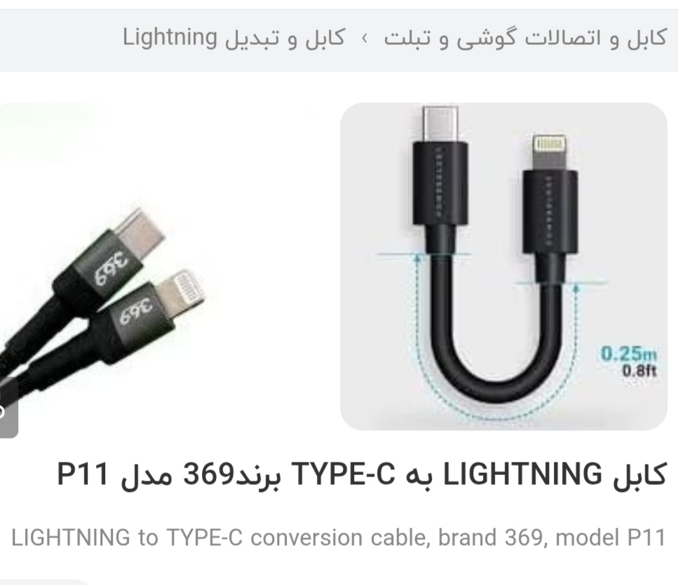 کابل پاوربانکی لایتنینگ به تایپ سی برند369 مدل p11